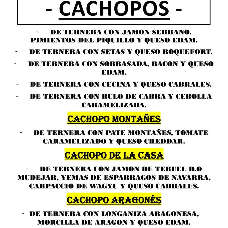 DISPONEMOS DE VARIEDAD DE RACIONES, TAPAS, HAMBURGUESAS, PLATOS y ENSALADAS, ADEMÁS DE NUESTROS CACHOPOS CON DIFERENTES RELLENOS.